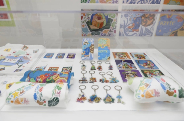 不仅如此,其他四个主题板块也亮点多多:“数字创意”板块将良渚文化、非遗与现代审美趣味碰撞结合,让智慧生活和公益数创作品乘上了“数字”之势;“乡村振兴”板块结合杭州本土乡村特色,打造以“回到”为主题的新农村景观环境;“现代学徒制”板块通过企业漫画设计、CG插画设计、未来城市建筑设计等项目,充分落实了应用型人才培养的教学目标;“文旅融合”板块对地方文化、地方美食、地方品牌等区域特色文旅项目进行融合设计,将名胜景观、非遗文化、传统品牌等元素与美食、茶叶、门店牌匾设计相融合,输出“文化+旅游”的系列纪念产品。