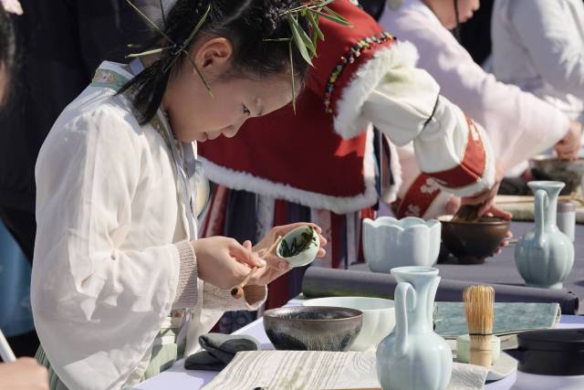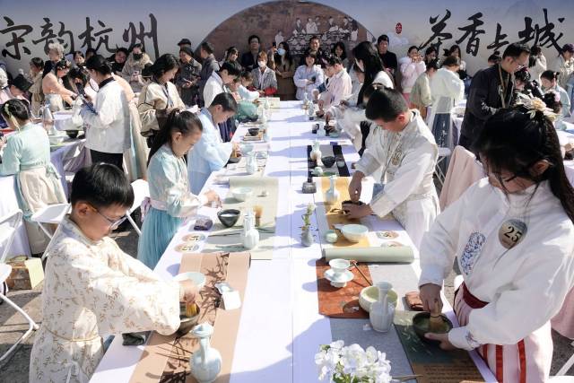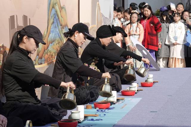 11月22日,“第十三届南宋斗茶会”在上城区叭蜡子巷广场举办。本届斗茶会以“薪火点茶,非遗续脉”为主题,通过“大瓯点茶”“五行茶礼”“龙兴十八式”等传统茶艺展演,仿宋点茶、极速点茶、百名“美丽小茶人”点茶等赛事,让古老的斗茶技艺走近大众,活动现场还首次引入“人与智能抹茶机斗茶”创新环节,在南宋皇城根下上演一场传统非遗与现代科技的精彩碰撞。