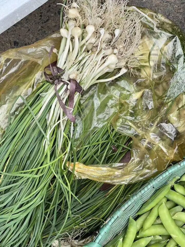 “新鲜的胡葱摘回来洗干净,准备炒鸡蛋。想想香喷喷的胡葱炒蛋,口水都要流出来了。”有人满载而归。