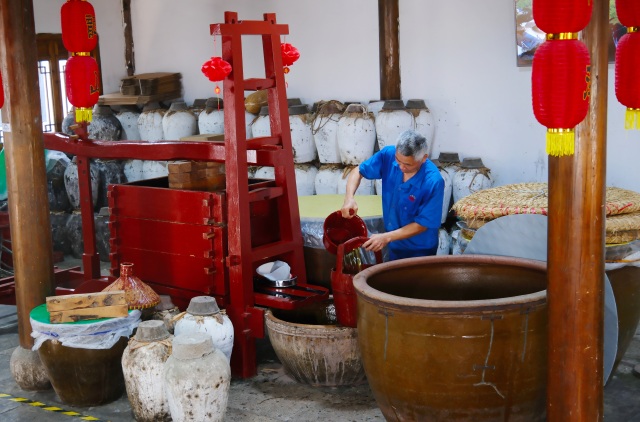 “时至今日,黄酒古法酿制依然遵循夏制酒药、秋制麦曲、立冬开酿、立春榨酒等‘节气法则’,过程要像养孩子一样,只要一个环节没到位,检验是通不过的。”谢守贤原先是一位高级酿酒技师,退休后又被返聘到中国黄酒博物馆的手工作坊。“好的酿酒师不仅要有过硬的技术,更重要的是对黄酒文化的热爱,这才是传统技艺传承下去的动力。”在他看来,黄酒代表着中国文化的精粹,其酿制技艺值得被更多有心人续写。